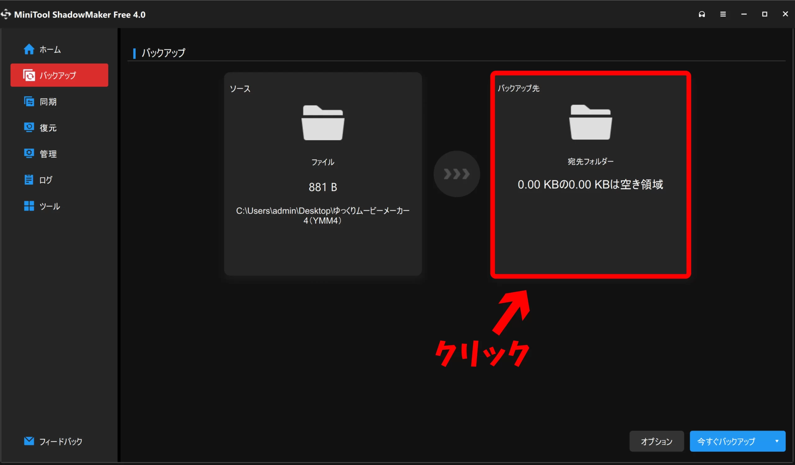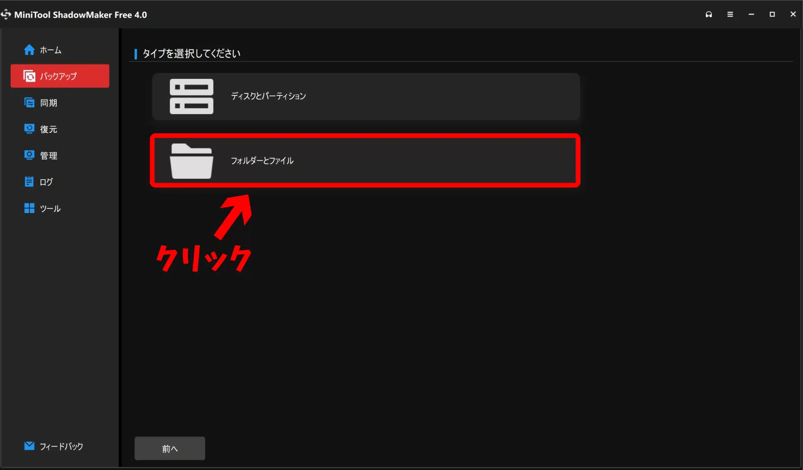 MiniTool ShadowMaker Free 4.0 が日本語で起動します。